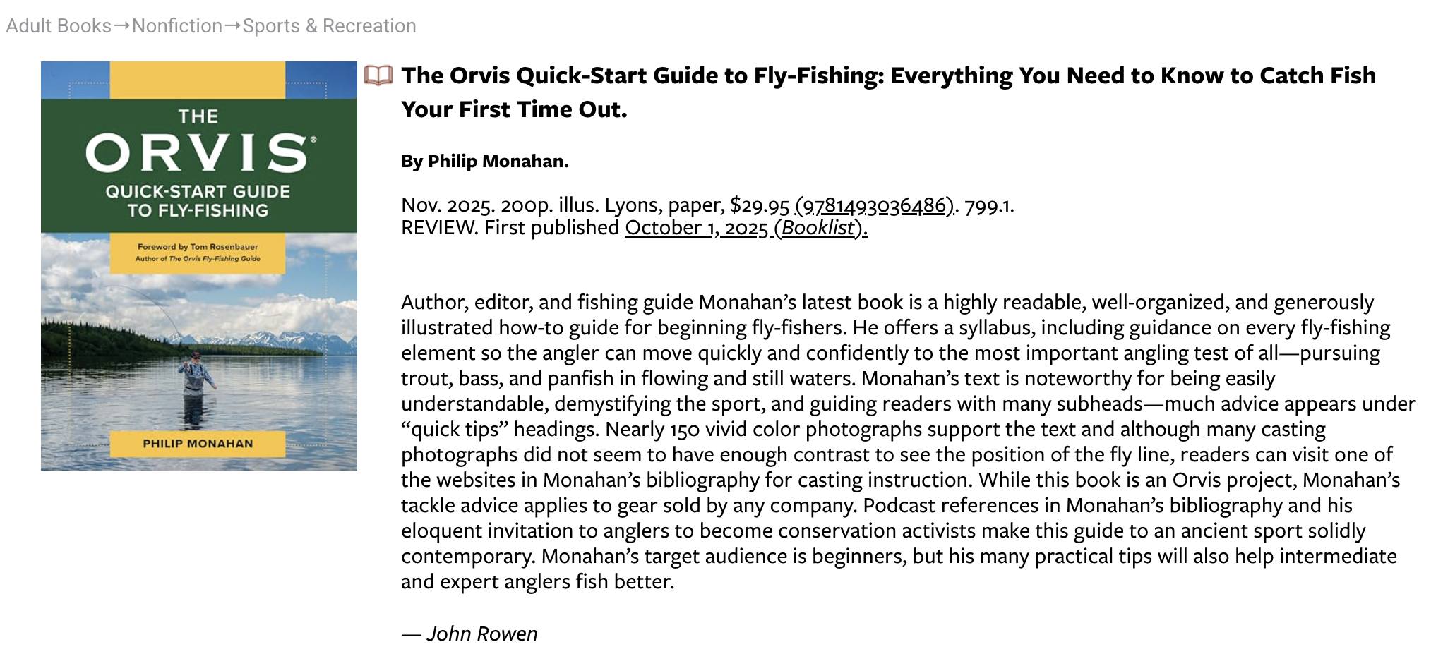 VERDICT With this guide in hand, even novices can approach their first fly-fishing experience more confidently; experienced anglers can also benefit.